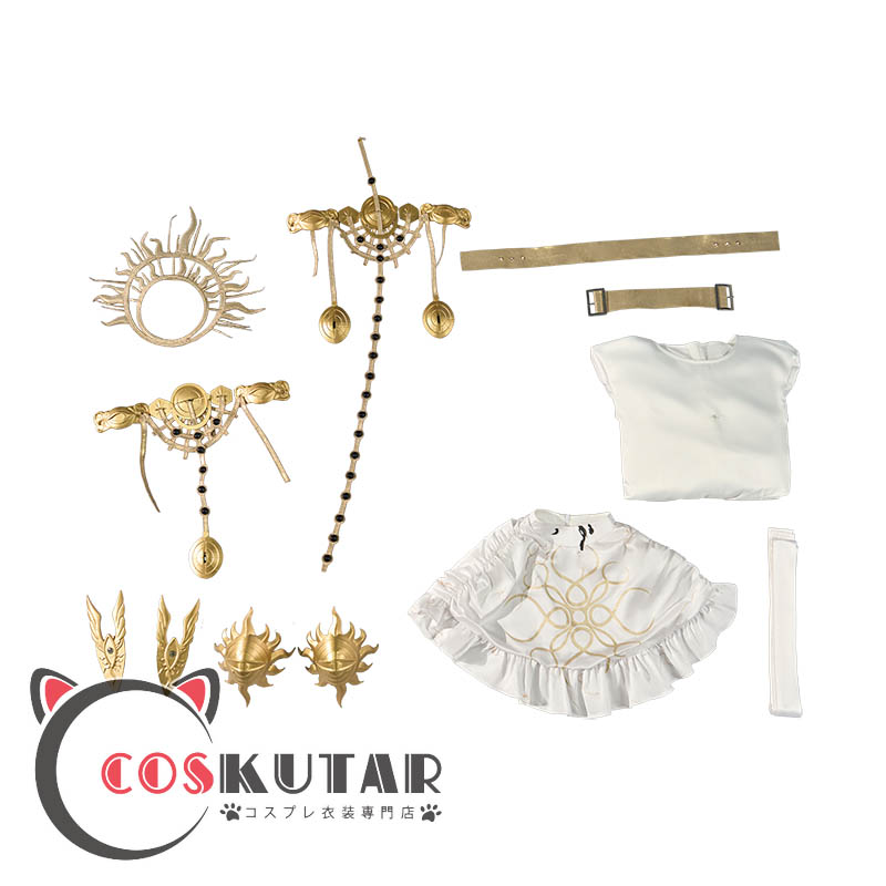 ケープ、ワンピース、インナーパンツ、飾り物(頭飾り、肩鎧、ベルト、腰飾り、タトゥーシール、前垂れ)