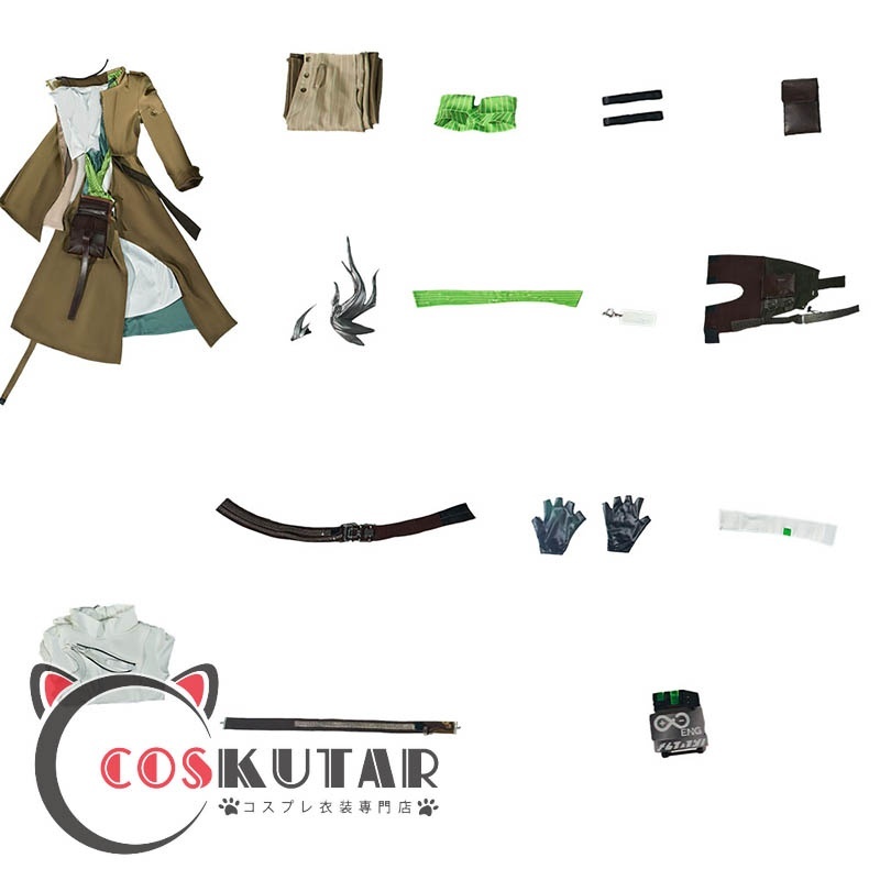 コート、シャツ、ズボン、飾り物(角、襟、髪飾り、耳飾り、手首飾り、バッグ、ベルト、手袋、腕飾り、肩飾り)