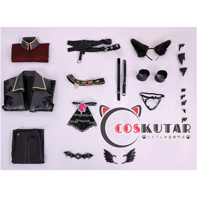 上着、シャツ、ズボン、飾り物(頭飾り、マスク、ベルト、肩飾り、ネクタイ、腰飾り、耳飾り、腕飾り)