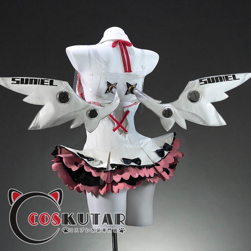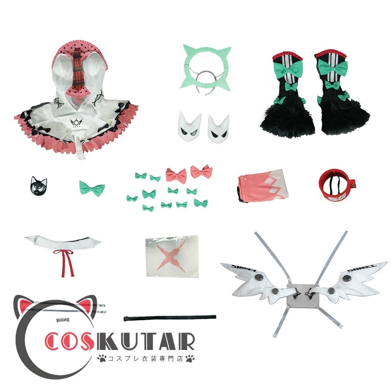 ワンピース、インナーパンツ、飾り物(ツバサ、頭飾り、袖カバー、袖飾り、蝶結び、首飾り、胸飾り、太もも飾り、タトゥーシール、付け襟、肩紐)