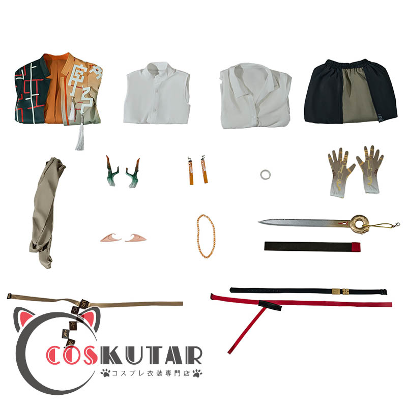 上着、シャツ、インナー、スカート、飾り物(角、耳飾り、付け耳、ブレスレット、手袋、剣、ベルト、腰飾り、肩掛け)