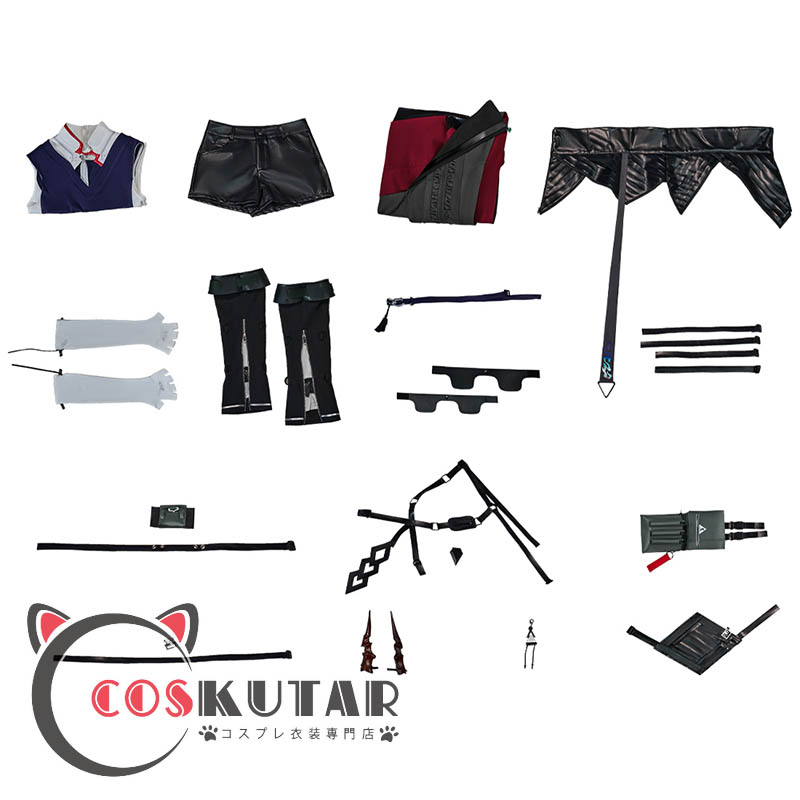 上着、インナー、ショットパンツ、飾り物(帯、手袋、袖カバー、袖飾り、ベルトセット、腰鞄、太もも飾り、肩ベルト、角)